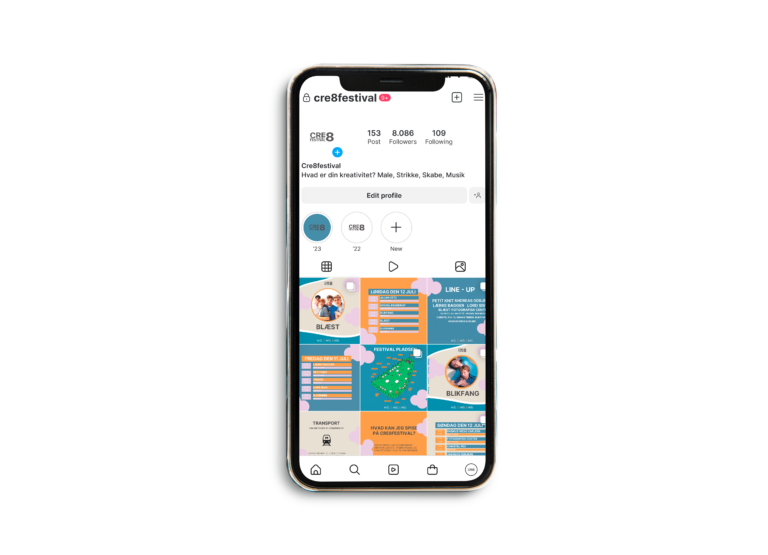 As a group we were tasked with proposing a concept for a festival in 2025 . Additionally, to develop proposals for communicating about the festival, including content for various platforms.We conceived the “cre8 festival” to honor creative hobbies. At this festival, attendees can explore booths dedicated to discovering new creative pursuits or delving deeper into ones they already enjoy. The event features larger happenings where artists specializing in specific genres share insights through engaging talks.