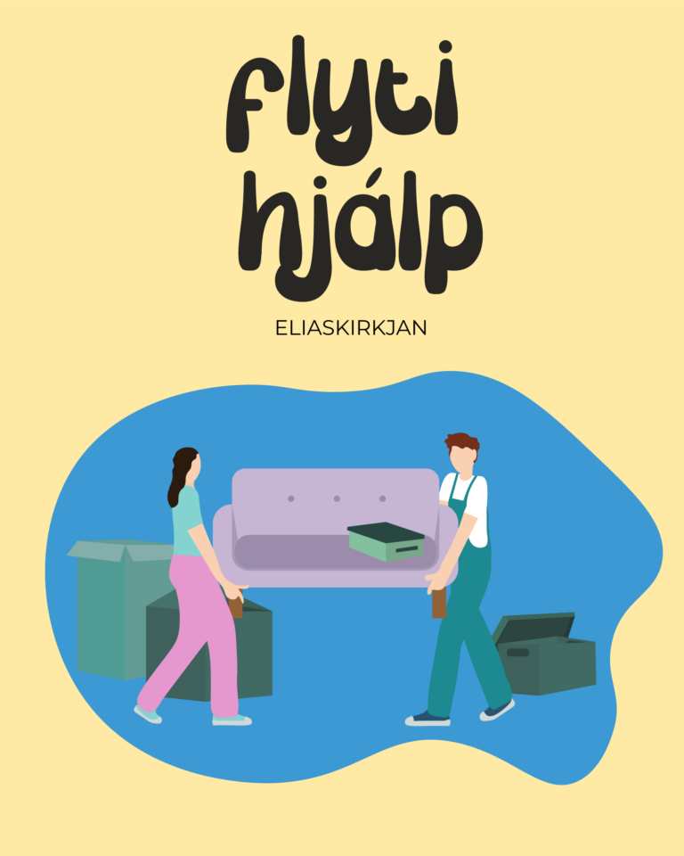“Flytihjálp,” literally translated to English as “moving help,” represents a valuable service offered by the Faroese church, “Eliaskirkjan,” in Copenhagen, Denmark. I was asked to create visuals to promote this service, and my approach was to infuse playfulness through vibrant colors, engaging typography, and lively illustrations. The goal was to make the visuals not only informative but also eye-catching, ensuring that the message about this helpful service stands out and reaches the community effectively.